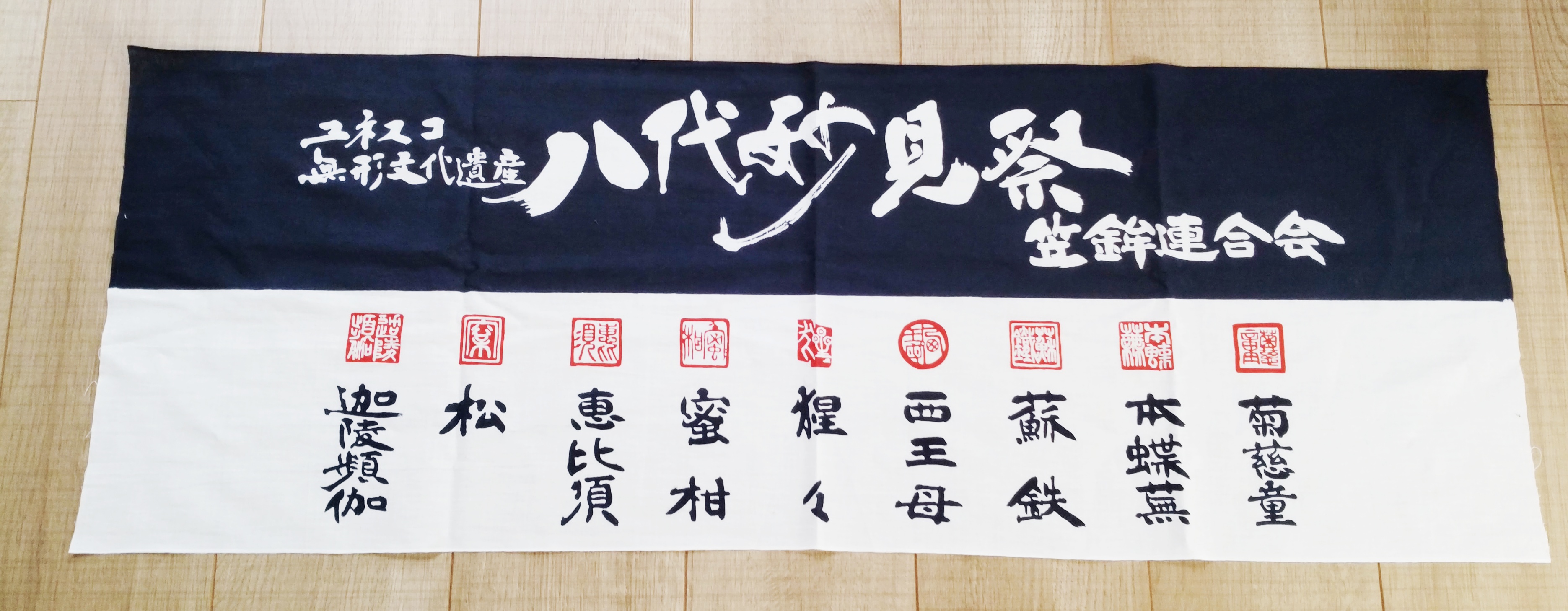 祭りも近づき、今年度の各奉納団体さま手ぬぐいも色とりどりに出来上がってきています。