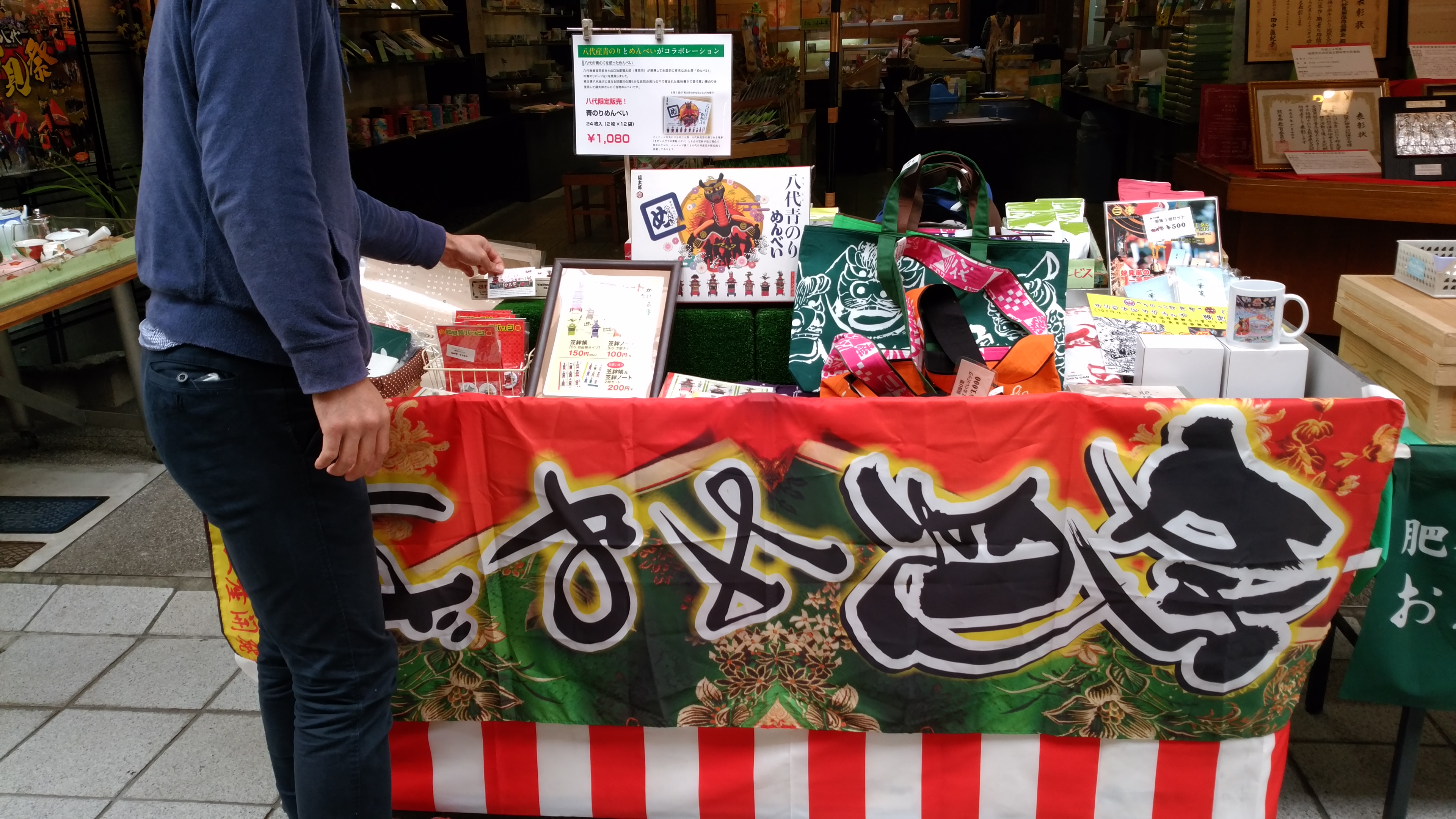 今日も問い合わせのあった妙見祭手ぬぐいバッグのほか、八代産青のりの入った話題のめんべいも入荷しました!!